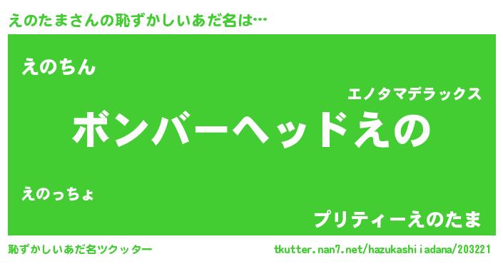 | ヘコむあだ名 | 『えのたま(笑)』『えのにー』 |