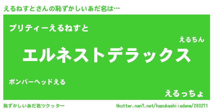 | 意味不明あだ名 | 『自称えるねすと』『ペロリンえるねすと』 |