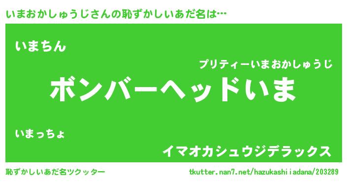 | ヘコむあだ名 | 『いまおかしゅうじ(笑)』『いまもー』 |
