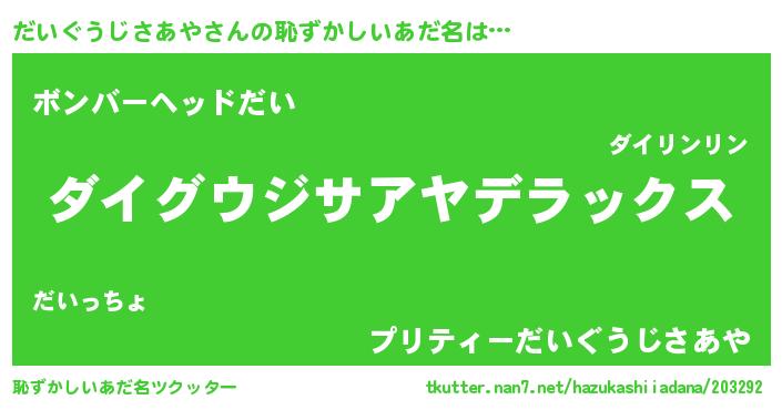 | 意味不明あだ名 | 『自称だいぐうじさあや』 |