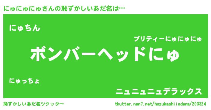 | ヘコむあだ名 | 『にゅにゅにゅ(苦笑)』『にゅにゅー』 |