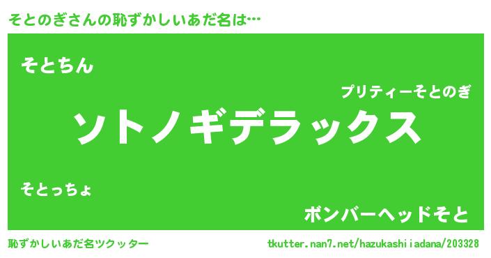 | ヒーロー風カッコイイあだ名 | 『超時空戦士ソトノギ』『ネオソトノギ』 |