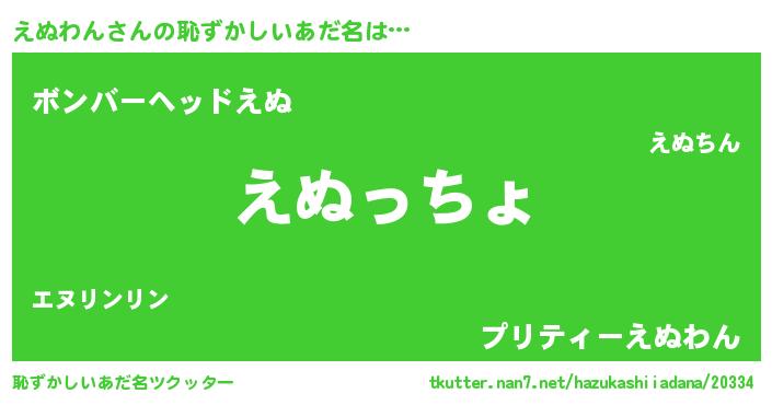 | 男性向けラノベタイトル風あだ名 | 『やはりえぬわんの青春ラブコメはまちがっている 』 |