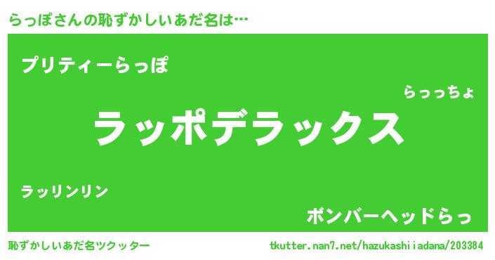 | 男性向けラノベタイトル風あだ名 | 『Re:らっぽから始める異世界生活』 |