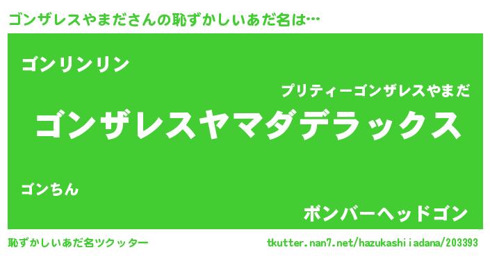 | 男性向けラノベタイトル風あだ名 | 『ゴンザレスやまだ~年齢イコール彼女いない歴の魔法使い~』 |