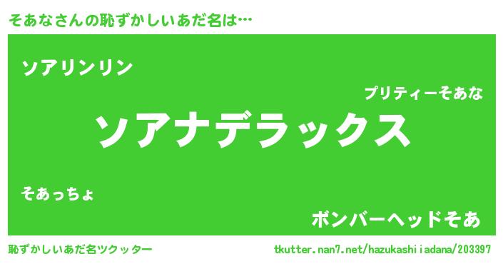 | 欧米人風あだ名 | 『そあな・ステッグマイヤー』 |