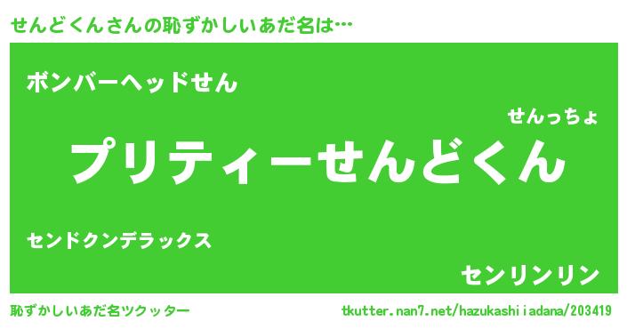 | ヘコむあだ名 | 『せんにゅー』『せんっ子』『牛乳』 |