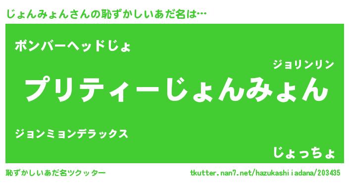 | 欧米人風あだ名 | 『じょんみょん・ステッグマイヤー』 |