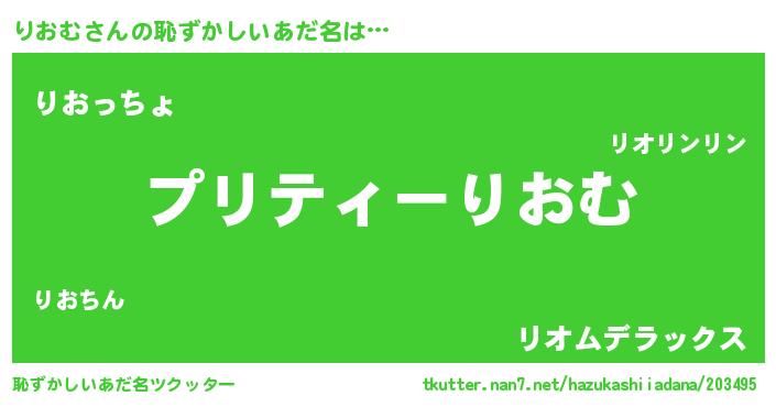 | 意味不明あだ名 | 『ペロリンりおむ』『りおむフォーエバー』 |