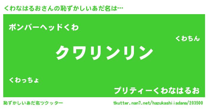 | 意味不明あだ名 | 『とにかく怪しいくわなはるお』 |