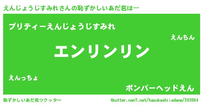 | 意味不明あだ名 | 『住所不定無職えんじょうじすみれ(56歳)』 |