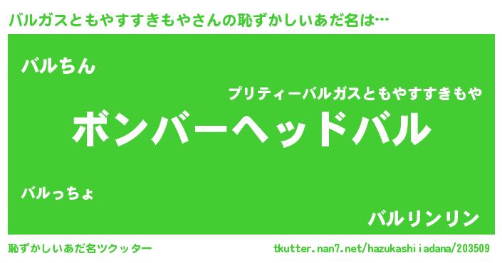 | ヘコむあだ名 | 『バルガスともやすすきもや(爆)』『バルを』 |