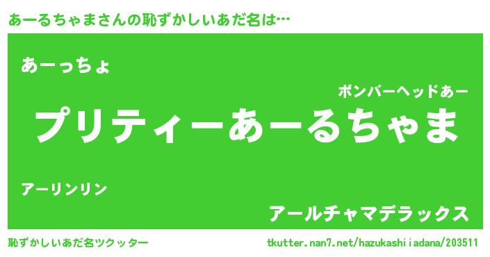 | 男性向けラノベタイトル風あだ名 | 『アールチャマスレイヤー』 |