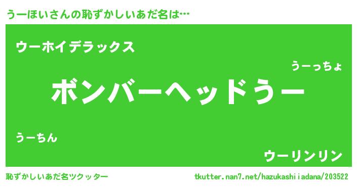 | ヒーロー風カッコイイあだ名 | 『正義の使者うーほい』『炎刃騎士ウー』 |