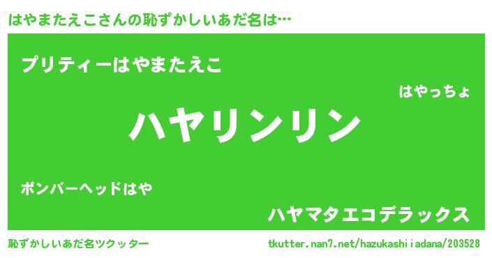 | 女子向けラノベタイトル風あだ名 | 『はやまたえこは平凡を望む』 |