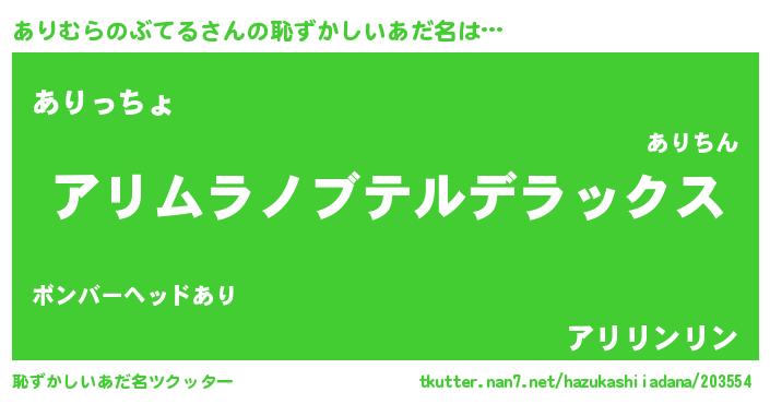 | 意味不明あだ名 | 『自称ありむらのぶてる』 |