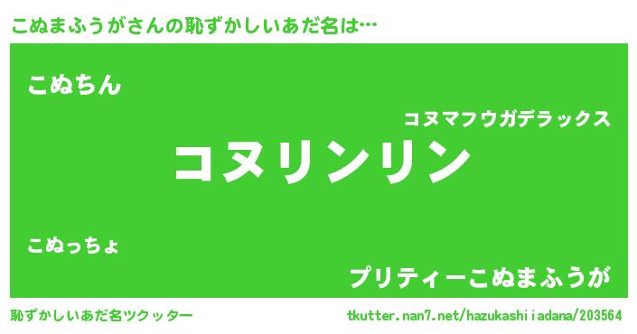 | ヘコむあだ名 | 『こぬっちょ』『こぬまふうが(小並感)』 |