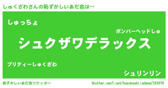 | ヒーロー風カッコイイあだ名 | 『究極戦士シュクザワ』『黄金騎士シュ』 |
