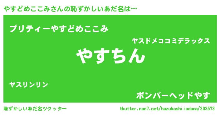 ヘコむあだ名 | 『やすどめここみ(爆)』『やすにゅー』 |