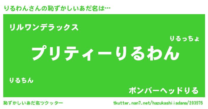 | 男性向けラノベタイトル風あだ名 | 『りるわんの憂鬱』 |