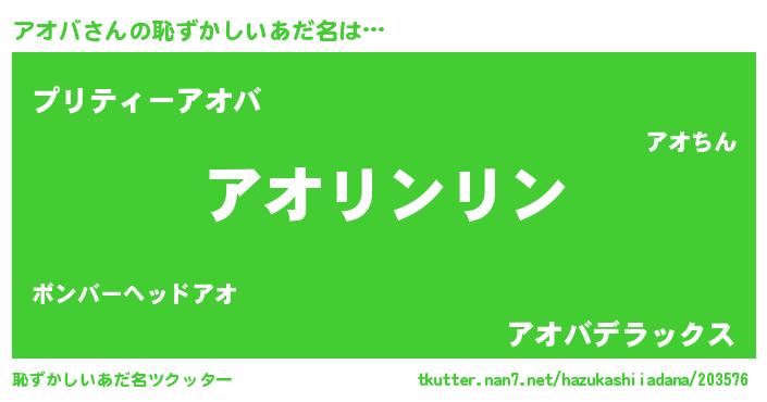 | ヘコむあだ名 | 『アオを』『アオふぇ~』『なまこ酢』 |