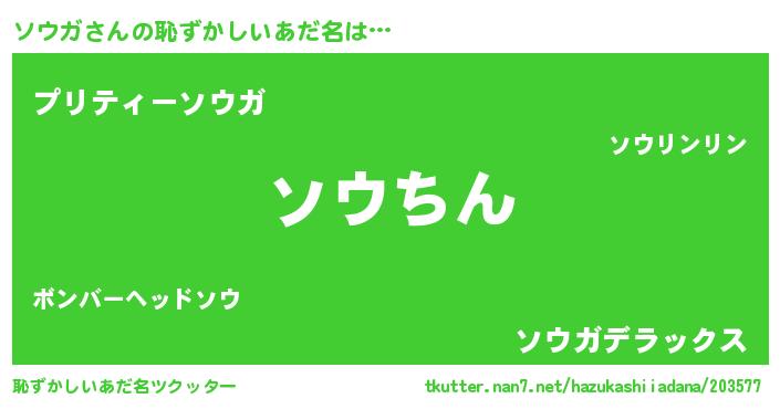 | ヘコむあだ名 | 『ソウガ(苦笑)』『ソウもー』 |