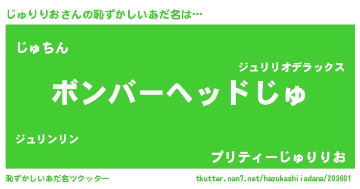 | ヘコむあだ名 | 『じゅりりお(小並感)』『じゅっふぃ~』 |