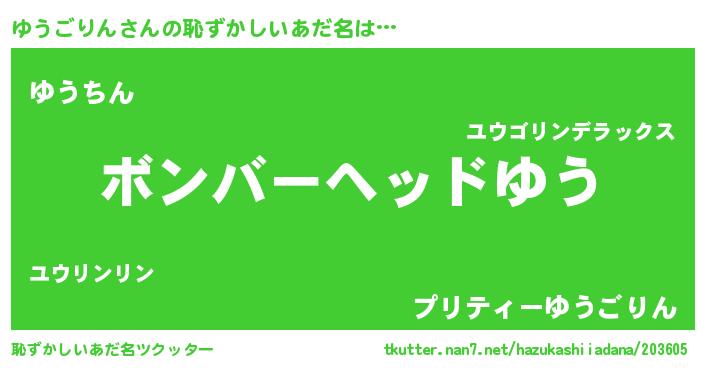 | ヒーロー風カッコイイあだ名 | 『友情の使者ゆうごりん』『仮面ユウダー』 |
