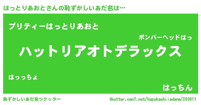 | 胡散臭い通販商品みたいなあだ名 | 『ガンによく効く高麗人参…その名も「はっとりあおと」』 |