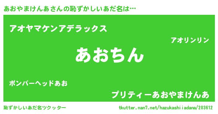 | ヘコむあだ名 | 『あおやまけんあ(笑)』『あおにゅー』 |