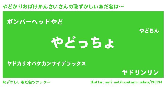 | 欧米人風あだ名 | 『やどかりおばけかんさい・ステッグマイヤー』 |