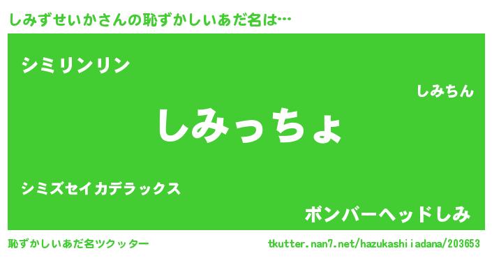 | 意味不明あだ名 | 『しみずせいかフォーエバー』 |