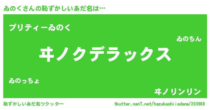 | ファンタジー風あだ名 | 『カークヰノラー』『ゼヰノトゥ』 |