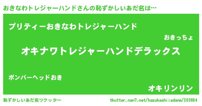 | 男性向けラノベタイトル風あだ名 | 『はたらくおきなわトレジャーハンドさま!』 |