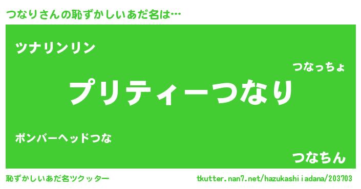 | ヘコむあだ名 | 『つなもー』『つな太郎』『なまこ酢』 |