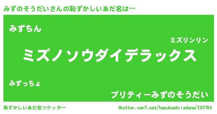 | 意味不明あだ名 | 『自称みずのそうだい』 |