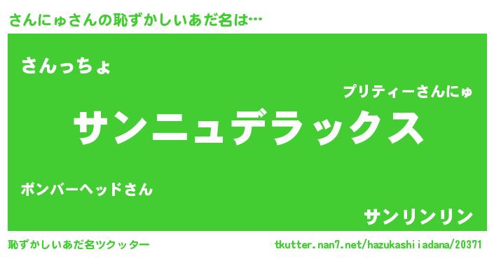 | 意味不明あだ名 | 『自称さんにゅ』『さんにゅフォーエバー』 |