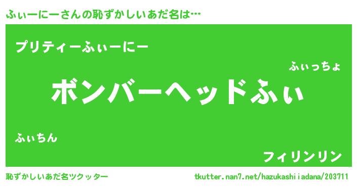 | ヘコむあだ名 | 『ふぃにー』『ふぃっ子』『レバニラ』 |
