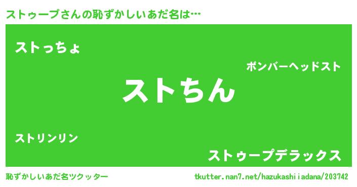 | 意味不明あだ名 | 『永久保存ストゥープ』『自称ストゥープ』 |