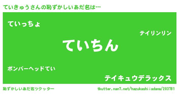 | 意味不明あだ名 | 『永久保存ていきゅう』『自称ていきゅう』 |