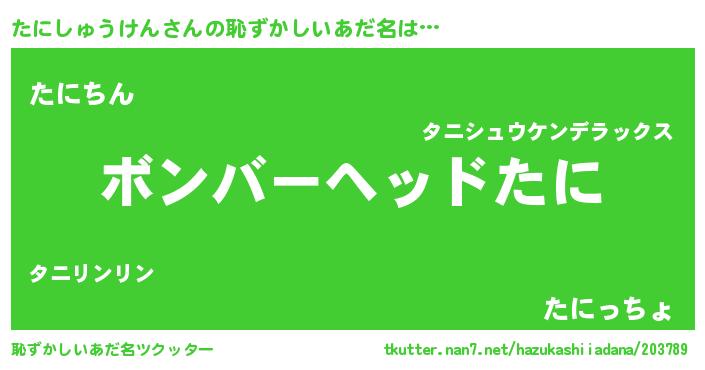 | 欧米人風あだ名 | 『アンジェラ・たにしゅうけん』 |