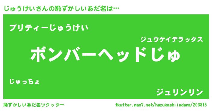 | ヒーロー風カッコイイあだ名 | 『慈愛の使者じゅうけい』『魔戒騎士ジュ』 |