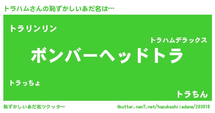 | ヒーロー風カッコイイあだ名 | 『友情の使者トラハム』『銀牙騎士トラ』 |