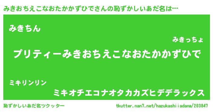 | 自動車の名前っぽいあだ名 | 『フェミーキ』『ミキティマ』 |