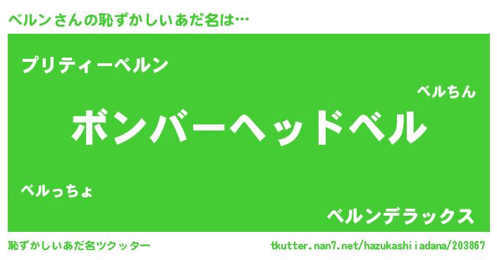 | 男性向けラノベタイトル風あだ名 | 『おまえをオタクにしてやるから、俺をベルンにしてくれ! 』 |
