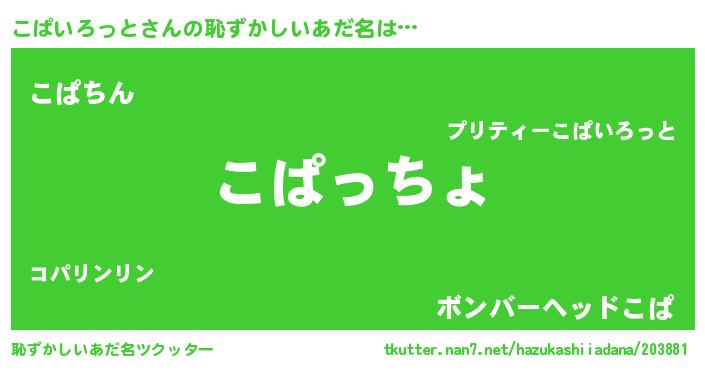 | ヘコむあだ名 | 『酢こんぶ』『こぱいろっと(笑)』 |