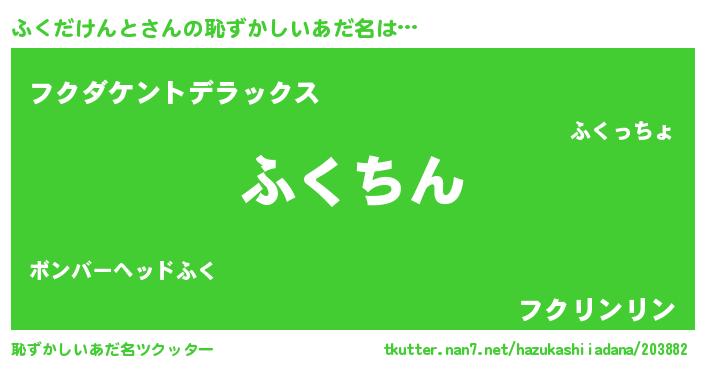 | ヘコむあだ名 | 『ふくだけんと(笑)』『ふくお』 |