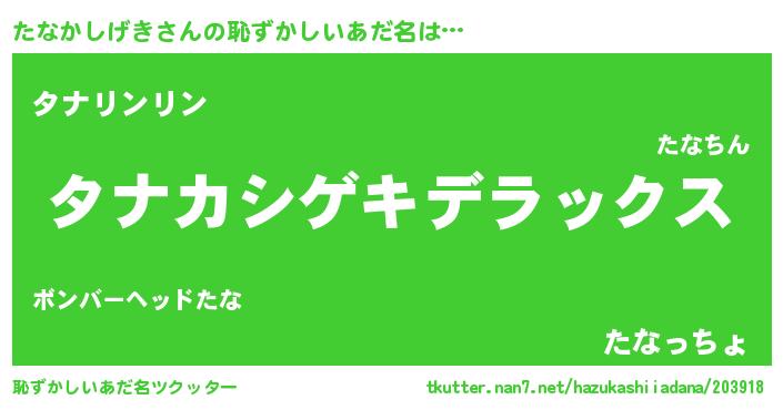| 意味不明あだ名 | 『自称たなかしげき』 |