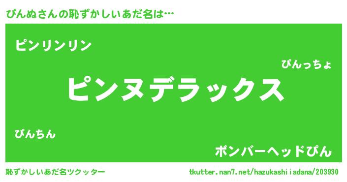| 男性向けラノベタイトル風あだ名 | 『この素晴らしい世界にぴんぬを!』 |