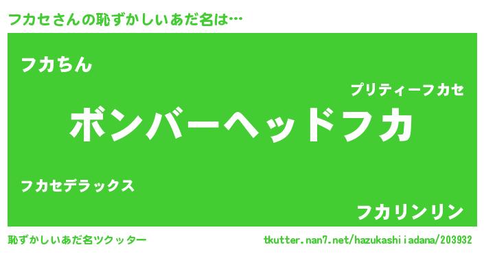 | 可愛いあだ名 | 『フカちゅっちゅ』『フカセママ』 |